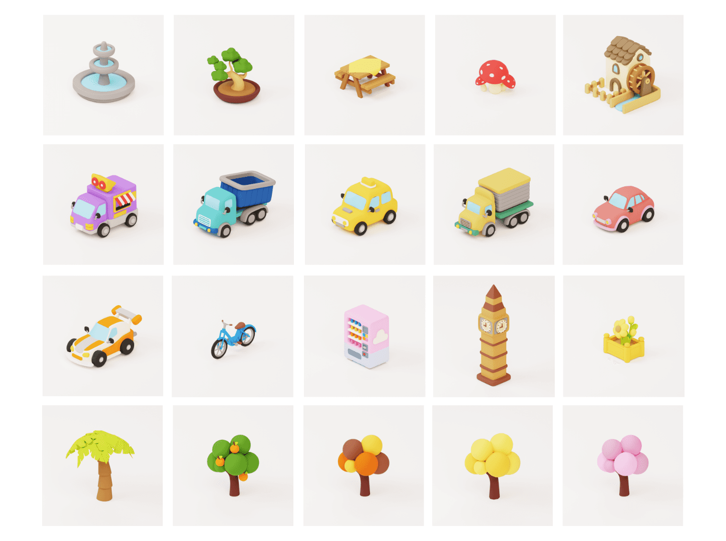 To fill the world, I created a huge set of small items like cars, trees, and street signs. I made sure every piece was built to the same scale so they all fit together perfectly. These simple, colorful details are what make the town feel alive and fun to explore.